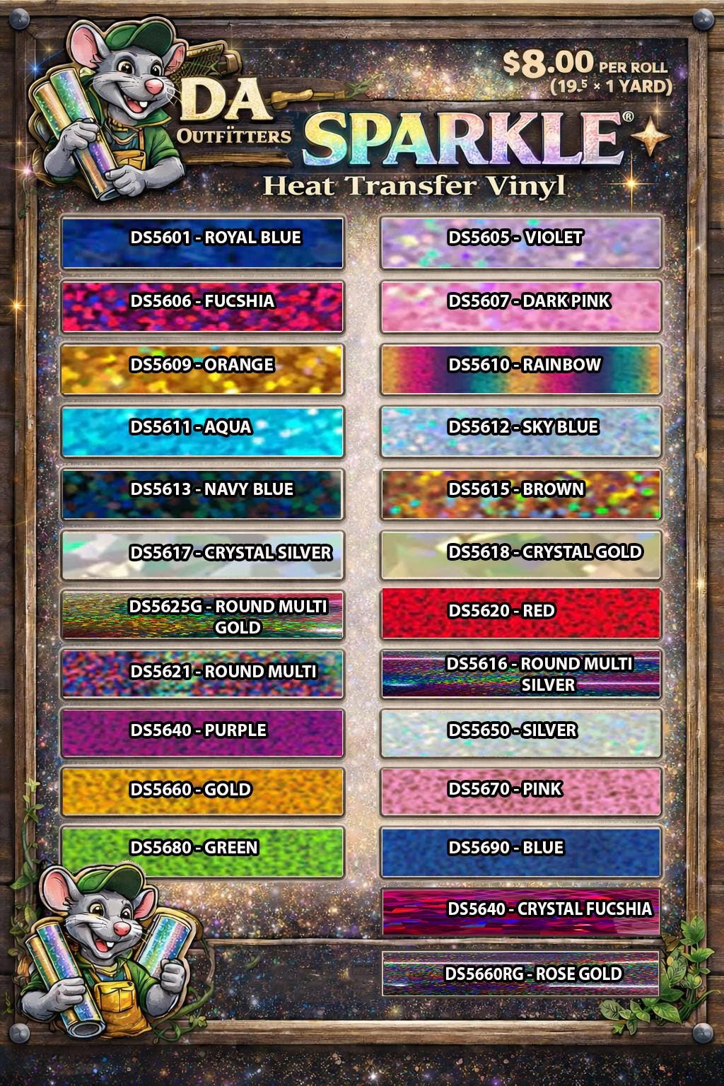 ✨ Decorative Sparkle HTV Rolls – $8.00 Each ✨