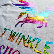 Decorative Sparkle is a holographic heat transfer film that creates stunning, shimmering rainbow color effects. It delivers a bold 3-D rhinestone look while remaining dimensionally stable, durable, and easy to weed—perfect for apparel that needs eye-catching shine without heavy texture.