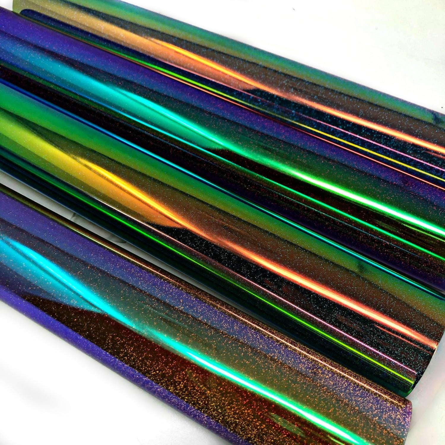 Add serious visual impact and perceived value to your designs with Chameleon Glitter HTV. This specialty heat transfer vinyl features a brilliant reflective metallic look that shifts color depending on garment shade and lighting, creating a stunning iridescent shimmer unlike standard glitter or metallic vinyl.