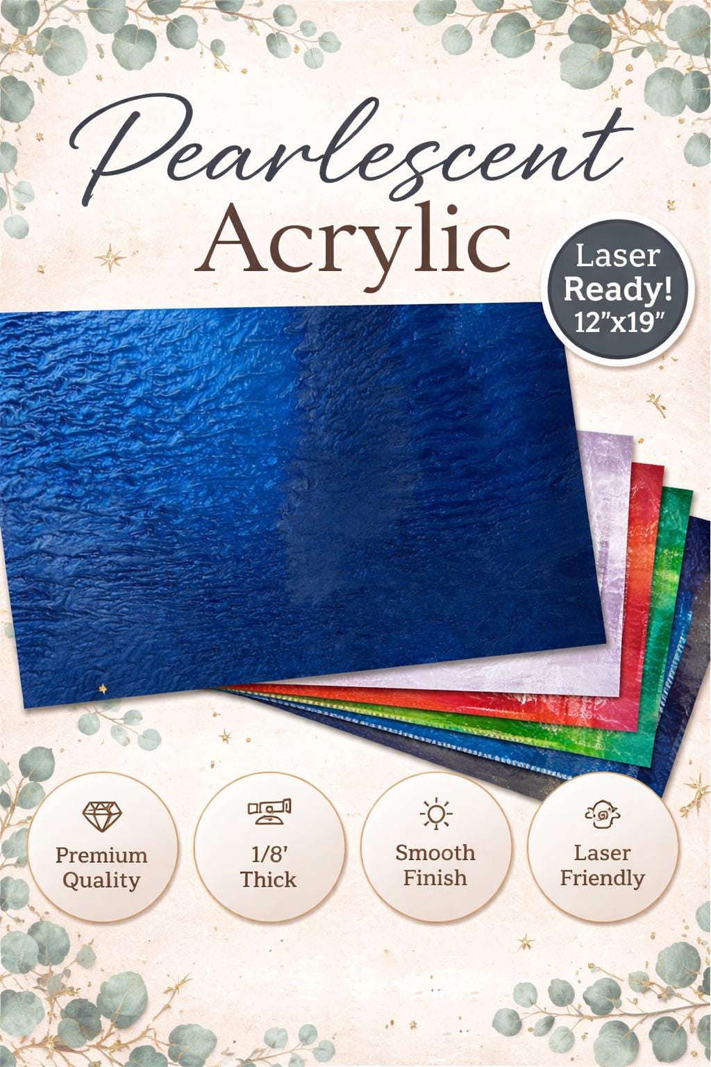 Pearlescent Acrylic Sheets – 12" x 19" – 1/8" Thick – Laser Ready – CO₂ Laser Acrylic – Glowforge Compatible